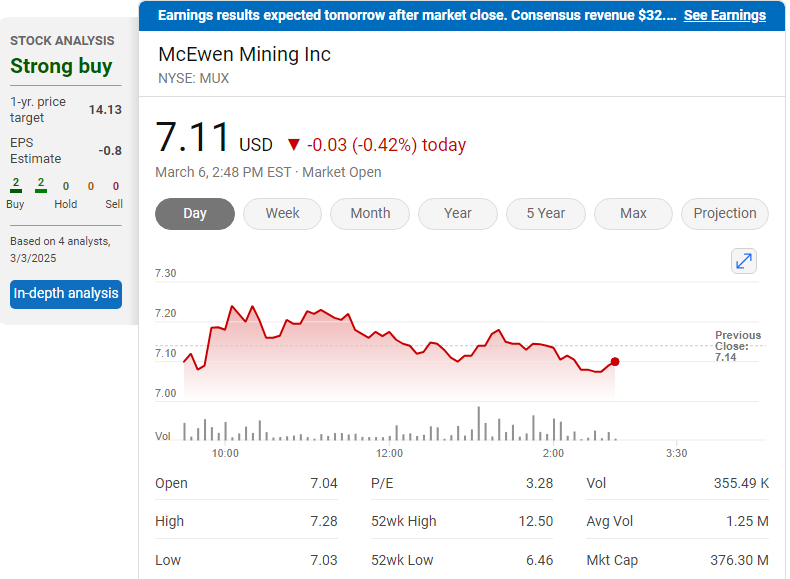 McEwen Mining Inc. stock